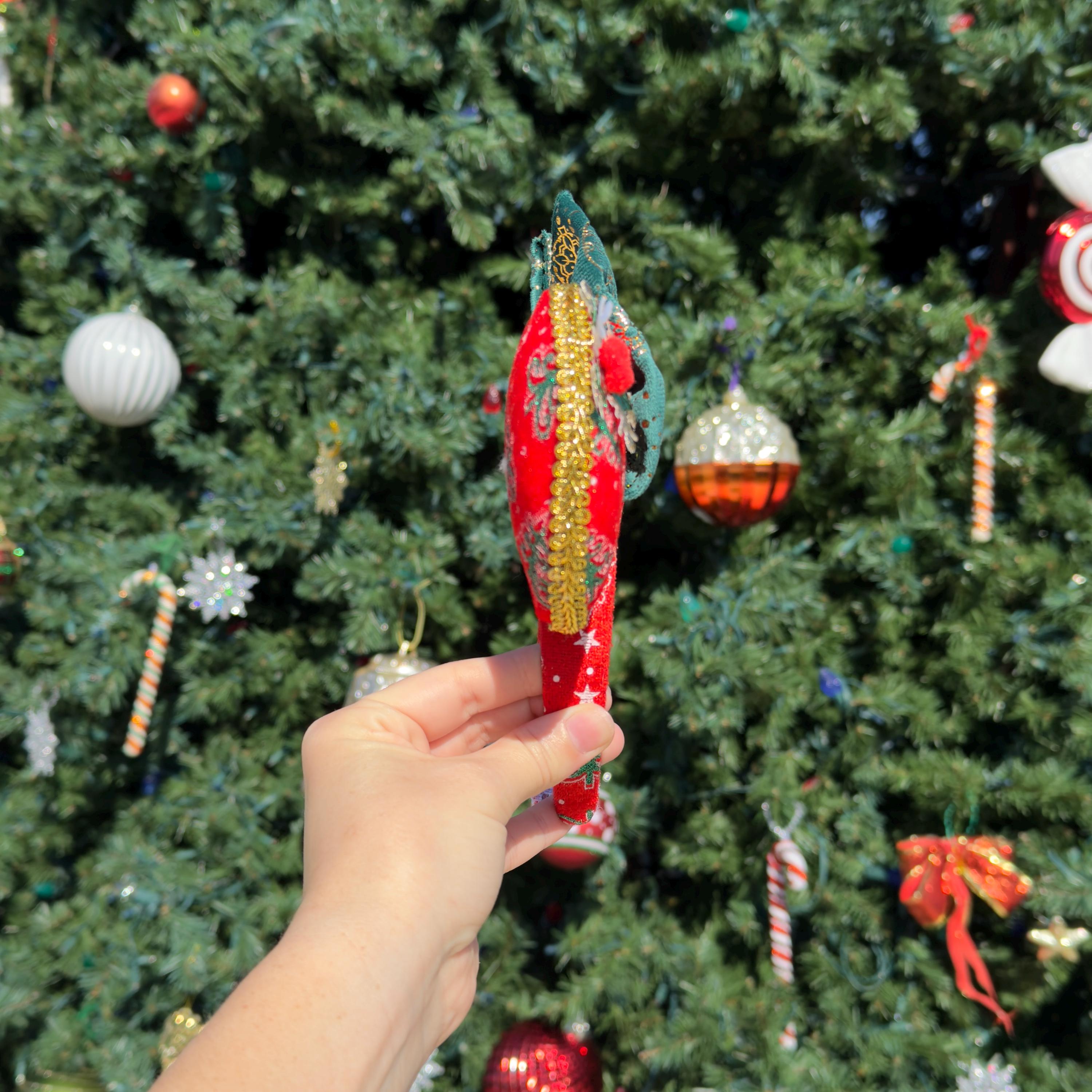 Fabric used: Festive Christmas Golden Hot Stamping Green Velvet Fabric & Red Sparkling Green Christmas Tree Pattern Velvet Fabric