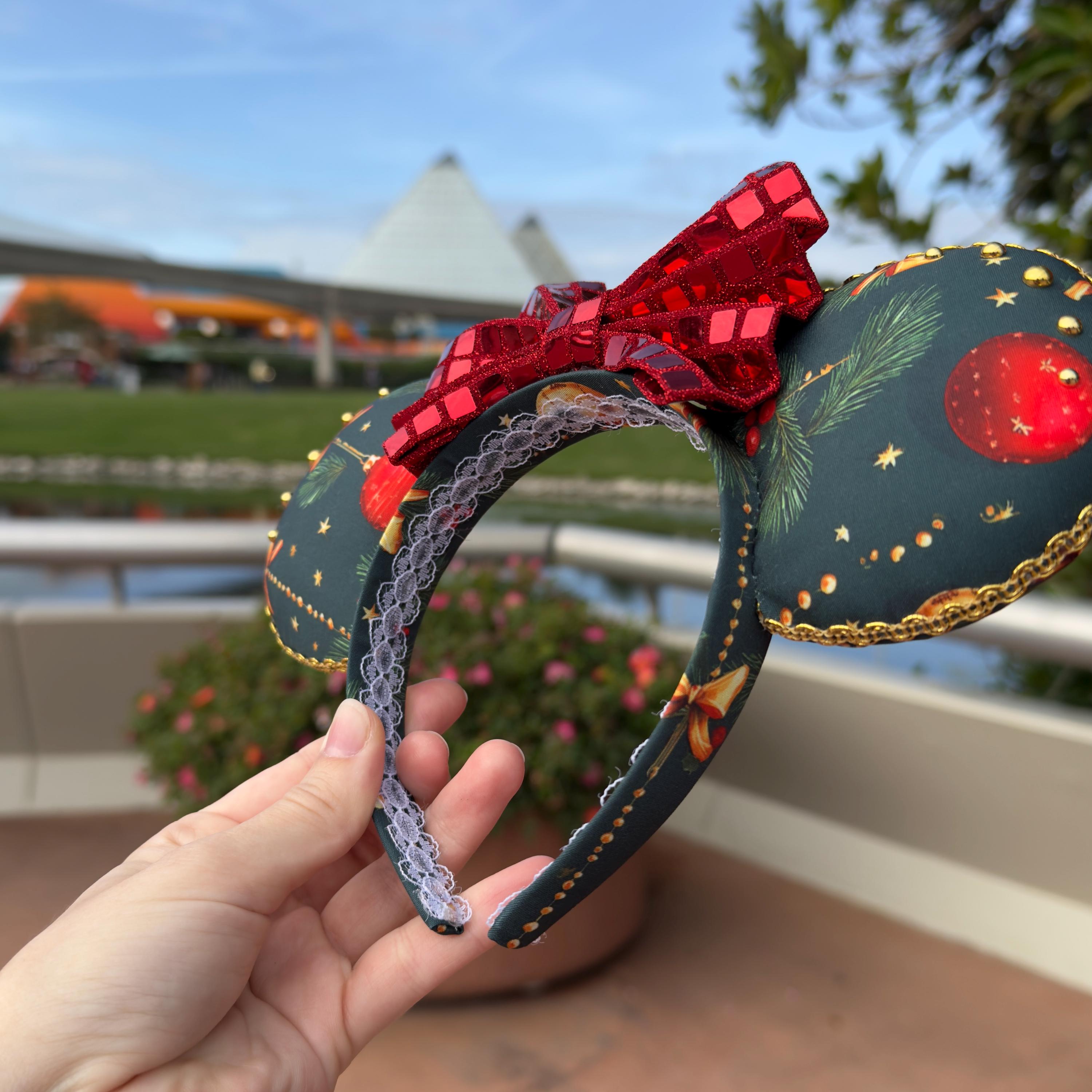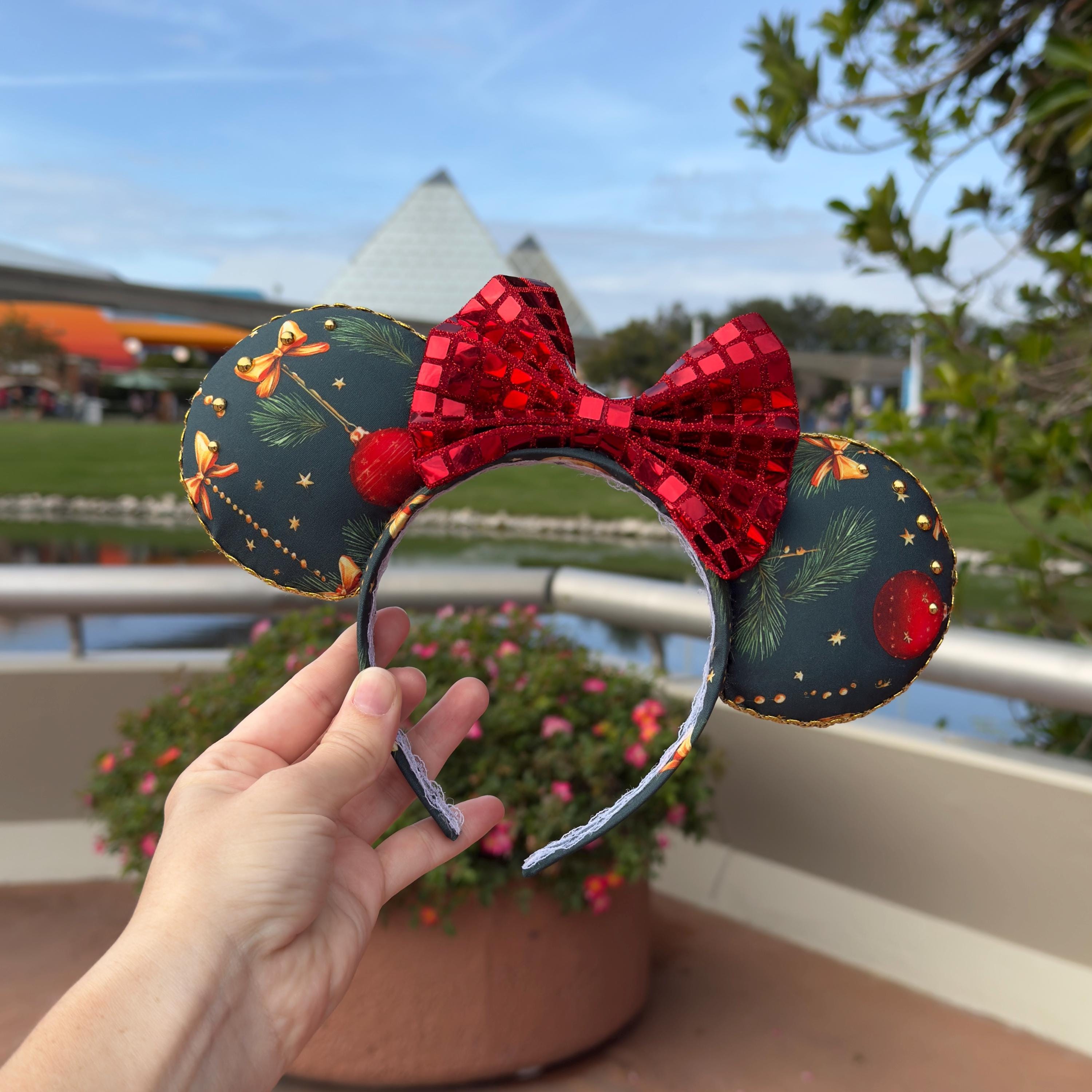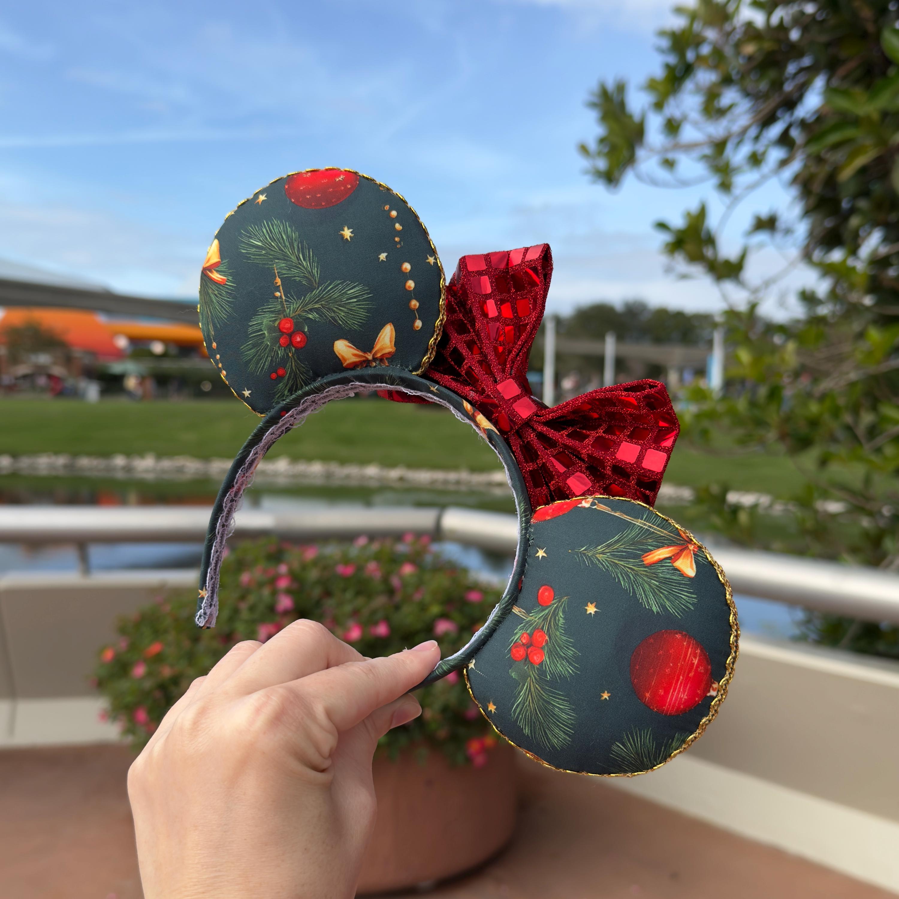 Fabric used: Festive Christmas Pine Branches Green Polyester Fabric & Red Metallic Plaid Sequin Fabric